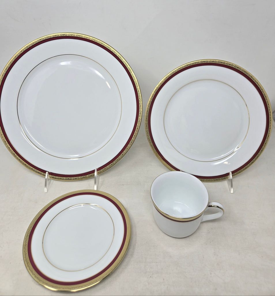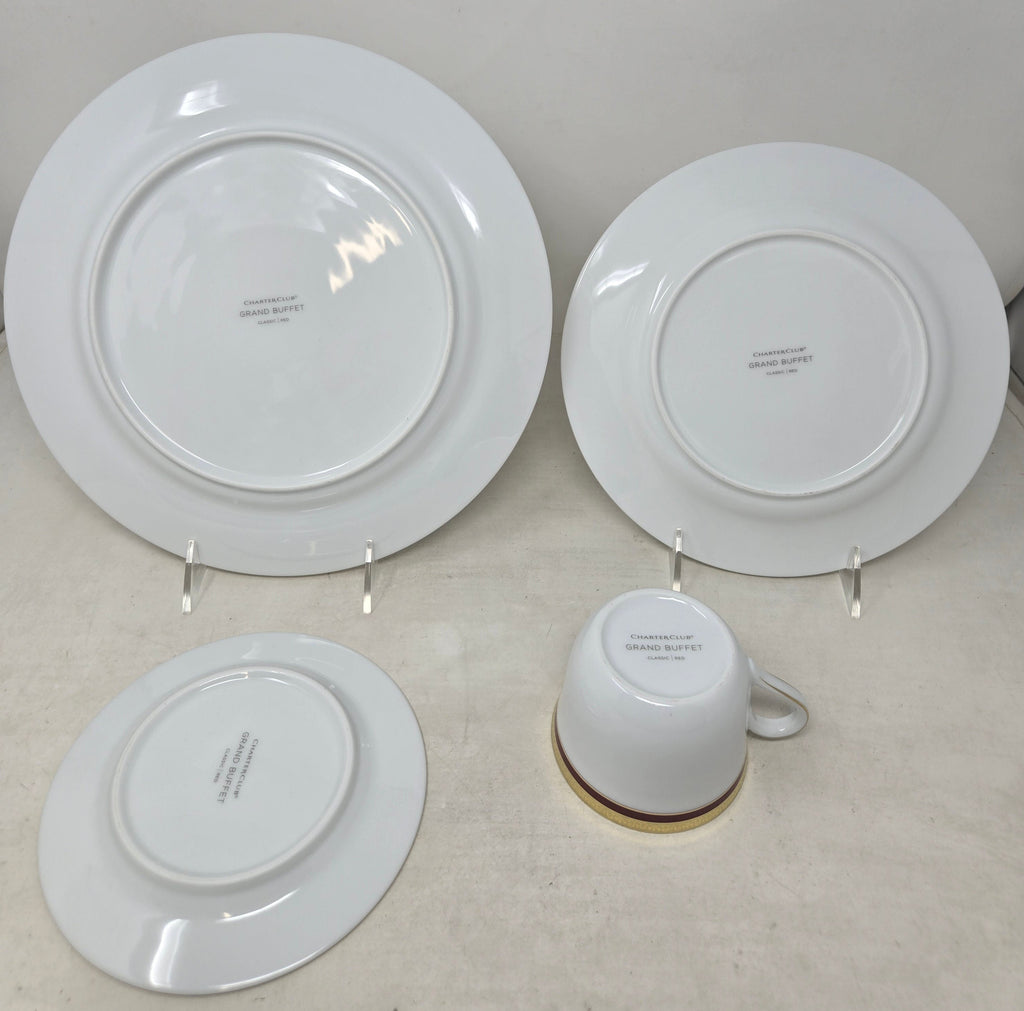 Set Of 4 Charter Club Grand Buffet Red Rim Place Setting B10