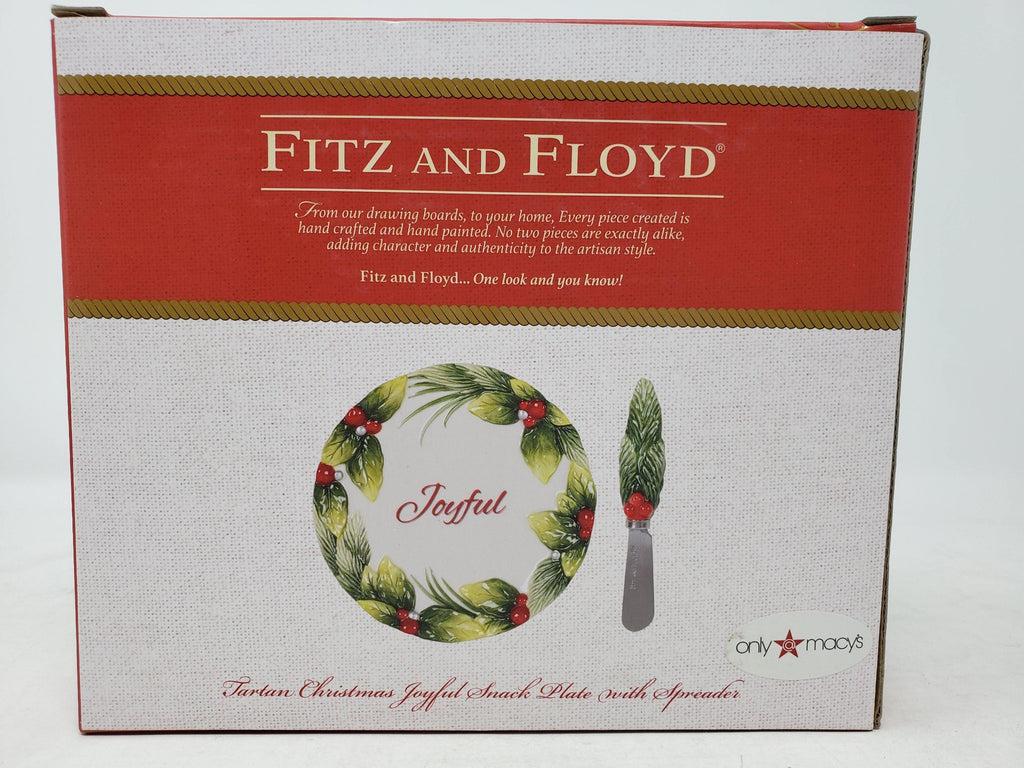 Fitz & Floyd Tartan Christmas Joyful 6" Snack Plate with Spreader B8