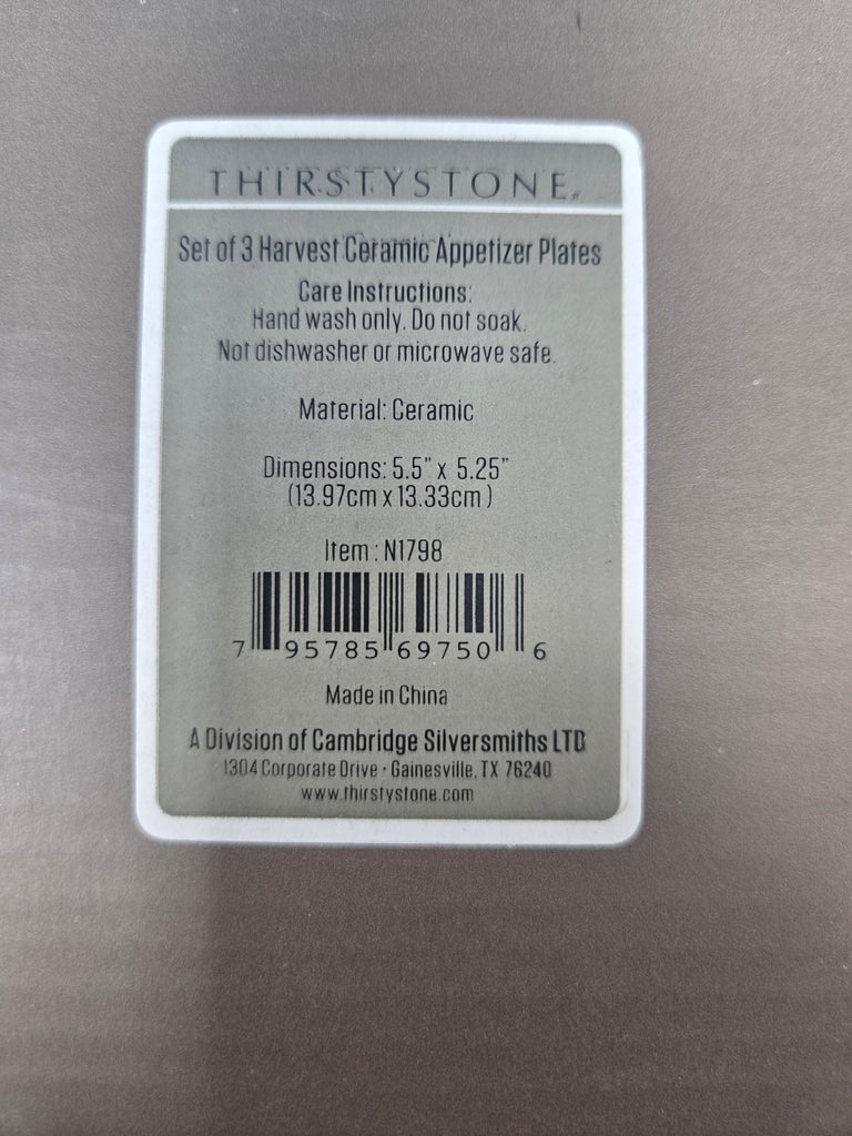 Set of 3 Thirstystone Harvest Ceramic Appetizer Plates B8