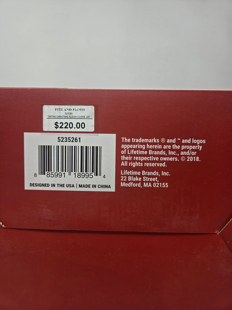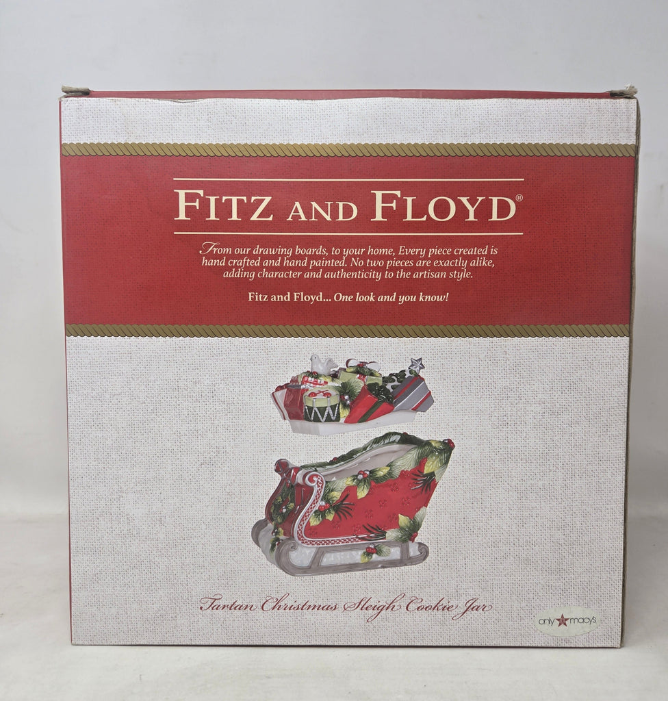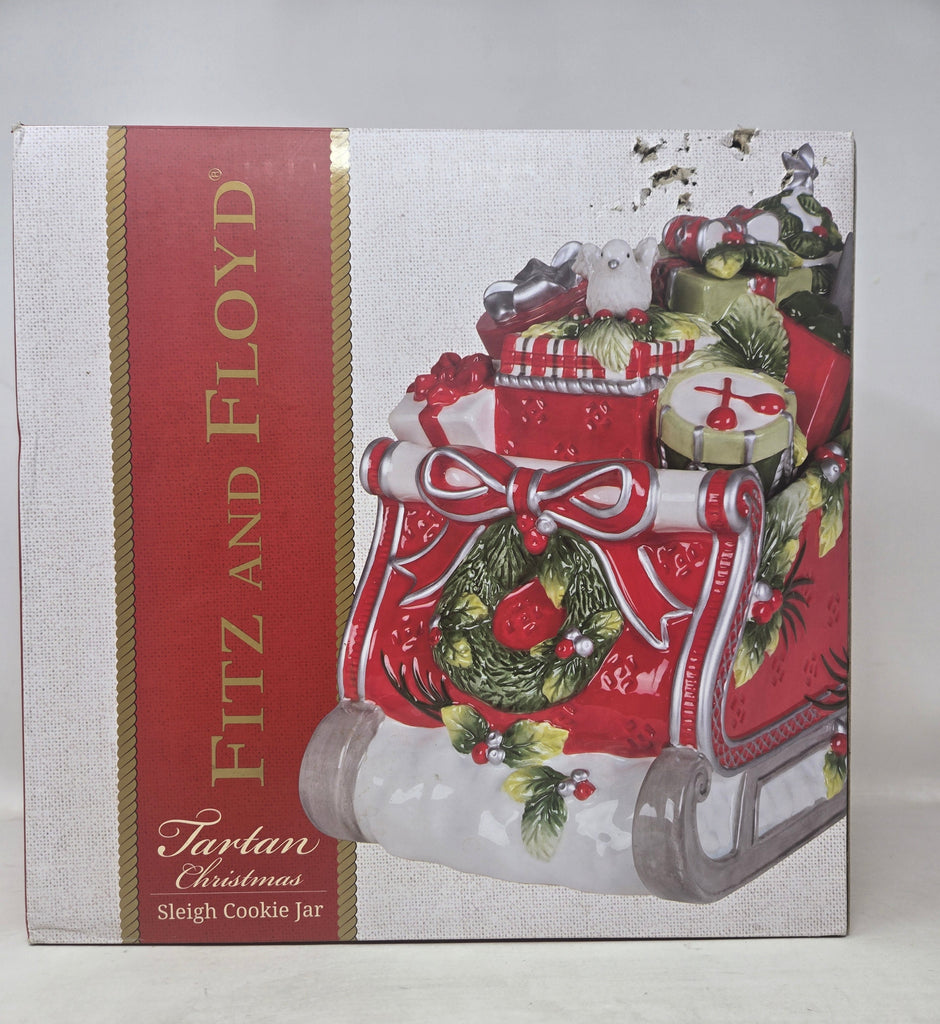 Fitz and Floyd Tartan Christmas Sleigh Cookie Jar