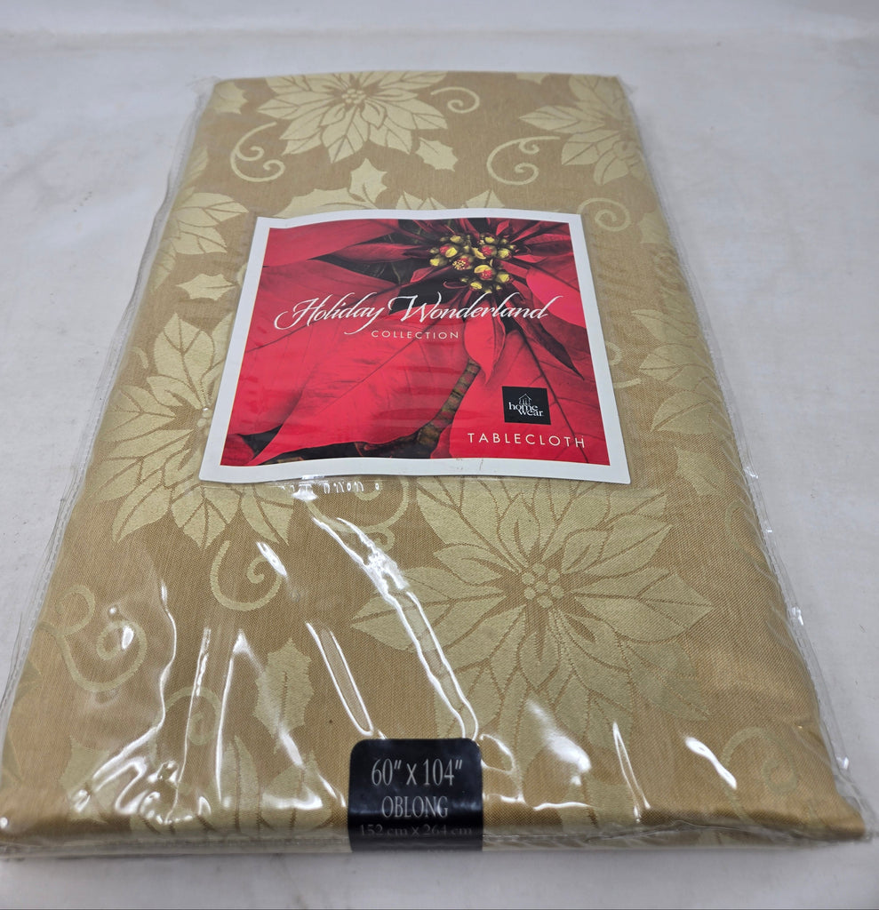 Homewear Holiday Wonderland Collection 60x104 Oblong Gold Tablecloth B8